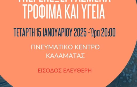 Ο Μουσικός Όμιλος Καλαμάτας «ΟΡΦΕΥΣ», στο πλαίσιο των πολιτιστικών του δράσεων, διοργάνωσε ομιλία-εκδήλωση την Τετάρτη 15 Ιανουαρίου 2025, στο Πνευματικό Κέντρο Καλαμάτας, με θέμα «Υπερεπεξεργασμένα Τρόφιμα και Υγεία».