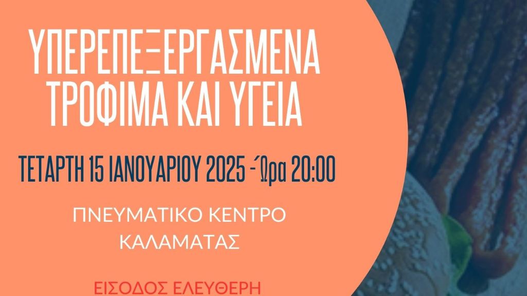Ο Μουσικός Όμιλος Καλαμάτας «ΟΡΦΕΥΣ», στο πλαίσιο των πολιτιστικών του δράσεων, διοργάνωσε ομιλία-εκδήλωση την Τετάρτη 15 Ιανουαρίου 2025, στο Πνευματικό Κέντρο Καλαμάτας, με θέμα «Υπερεπεξεργασμένα Τρόφιμα και Υγεία».